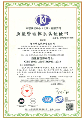 2000年10月,公司依據(jù)ISO9001:1994標(biāo)準(zhǔn),建立了質(zhì)量管理體系,通過了中國機(jī)械工業(yè)質(zhì)量體系認(rèn)證中心(現(xiàn)中聯(lián)認(rèn)證中心北京有限公司)認(rèn)證;